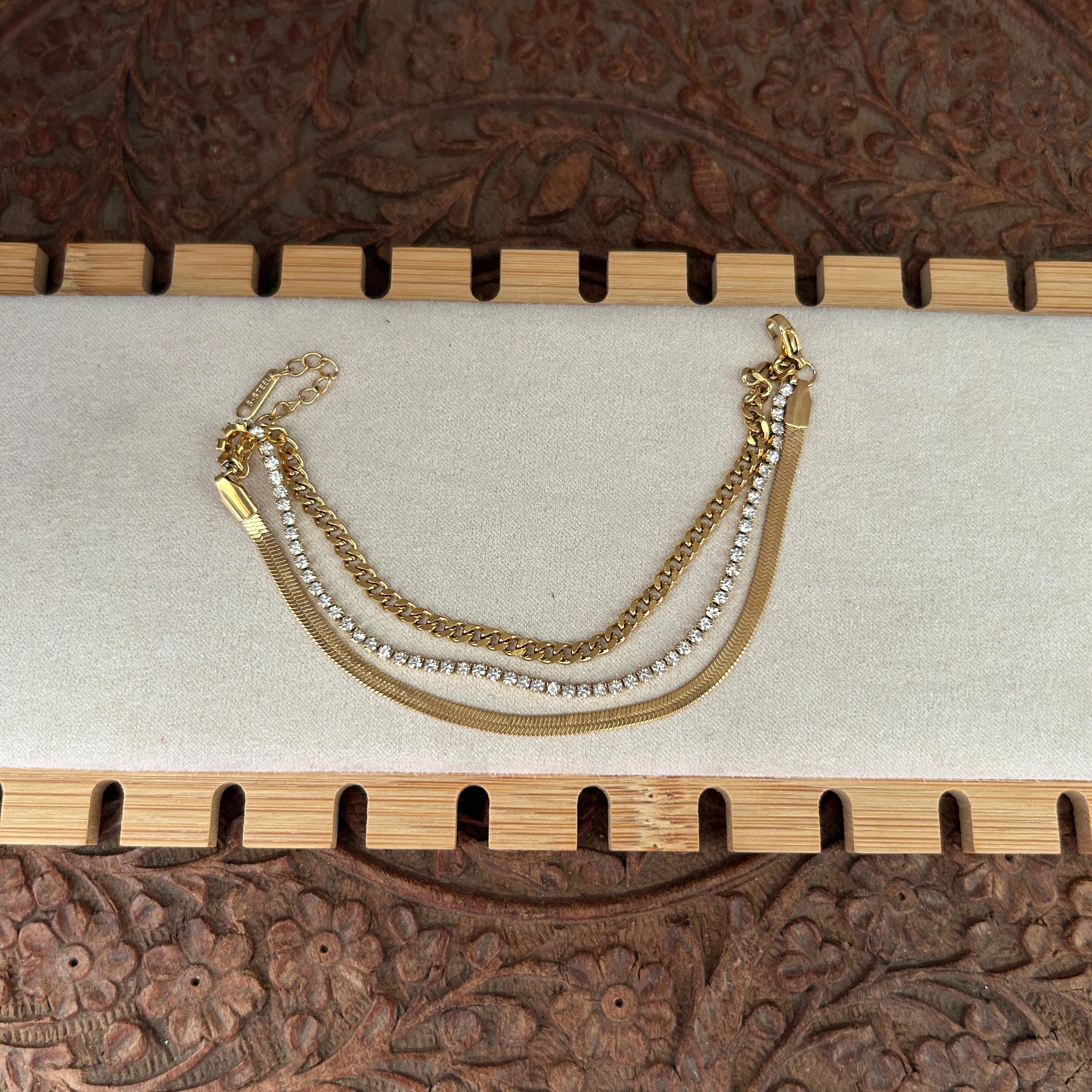 Snake chain tennis layered bracelet